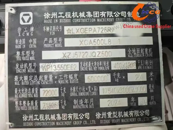 | Capacité de levage maximale | 500 tonnes | contrepoids | 120 tonnes |